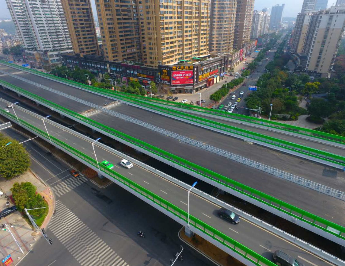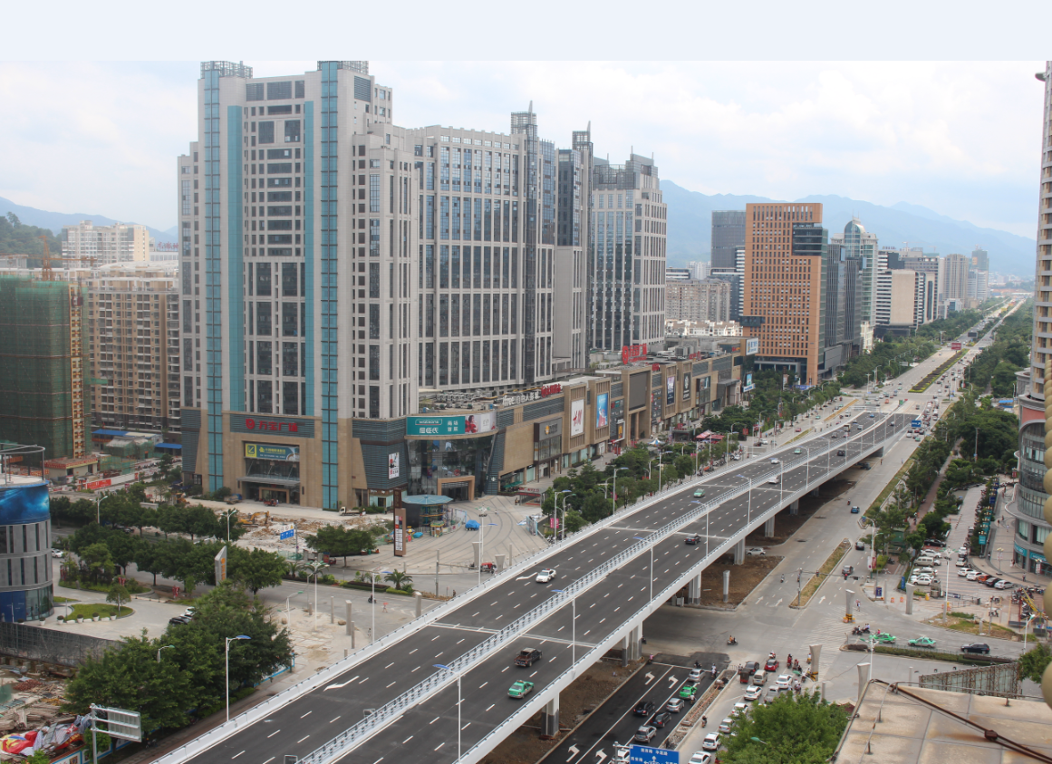 龍巖大道高架橋項(xiàng)目為省、市重點(diǎn)建設(shè)項(xiàng)目,是龍巖中心城市連接南北、溝通新老城區(qū)的重要樞紐,項(xiàng)目位于龍巖市南北交通中心軸和景觀軸線龍巖大道上,全長3395m,包含橋梁和地面道路兩大部分,其中橋梁工程總長2329m,橋?qū)?6m,包含一座190+150m獨(dú)塔斜拉索鋼箱梁主橋(主橋?qū)?6.3m),全線設(shè)計(jì)為雙向六車道,設(shè)計(jì)車速60km/h,在西陂路及人民路處各設(shè)置上下匝道,跨越雙洋路、羅龍東路、人民路、登高西路、西陂路城市主干道,項(xiàng)目總投資約24億元。
