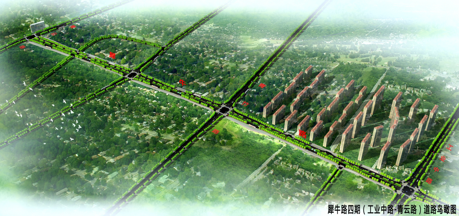 犀牛路四期道路工程起于工業(yè)中路,終于青云路,