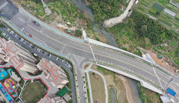 羅橋節(jié)點(diǎn)改造提升工程2019年11月開工建設(shè),2021年8月建成通車。該項(xiàng)目沿北環(huán)西路、龍興路設(shè)置南北分離式雙向四車道高架,南側(cè)接龍興路,北側(cè)接現(xiàn)狀北環(huán)西路,高架靠東側(cè)布置(緊貼烈士陵園),橋梁總長(zhǎng)約1140米,凈寬約7.7米;在雙洋路、龍川北路、北環(huán)西路設(shè)置人行天橋,與山體步道銜接,以完善慢行系統(tǒng);在烈士陵園山體下采用明挖回填方式設(shè)置框涵,長(zhǎng)度約225米,凈寬10.75米。工程投資1.4億元。