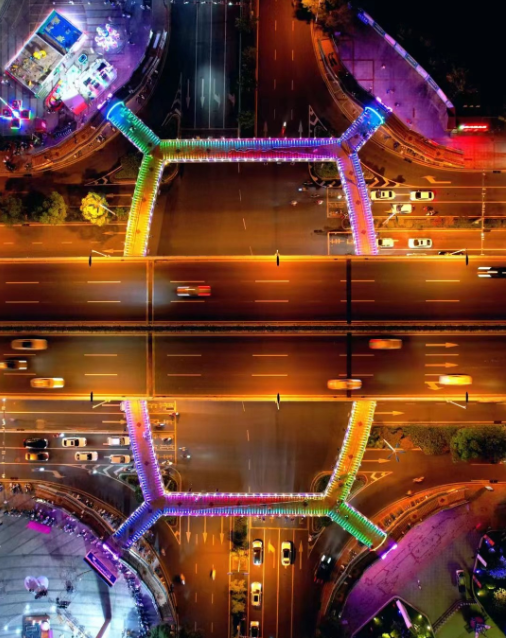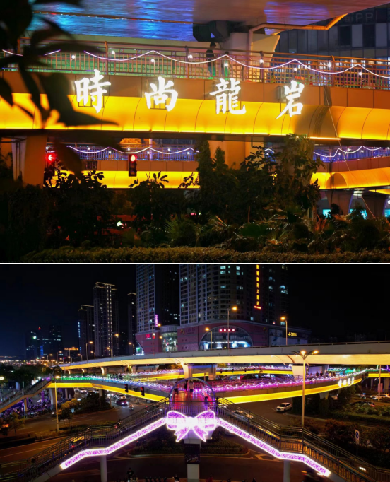 龍巖大道萬(wàn)寶廣場(chǎng)人行天橋夜景文化工程完工